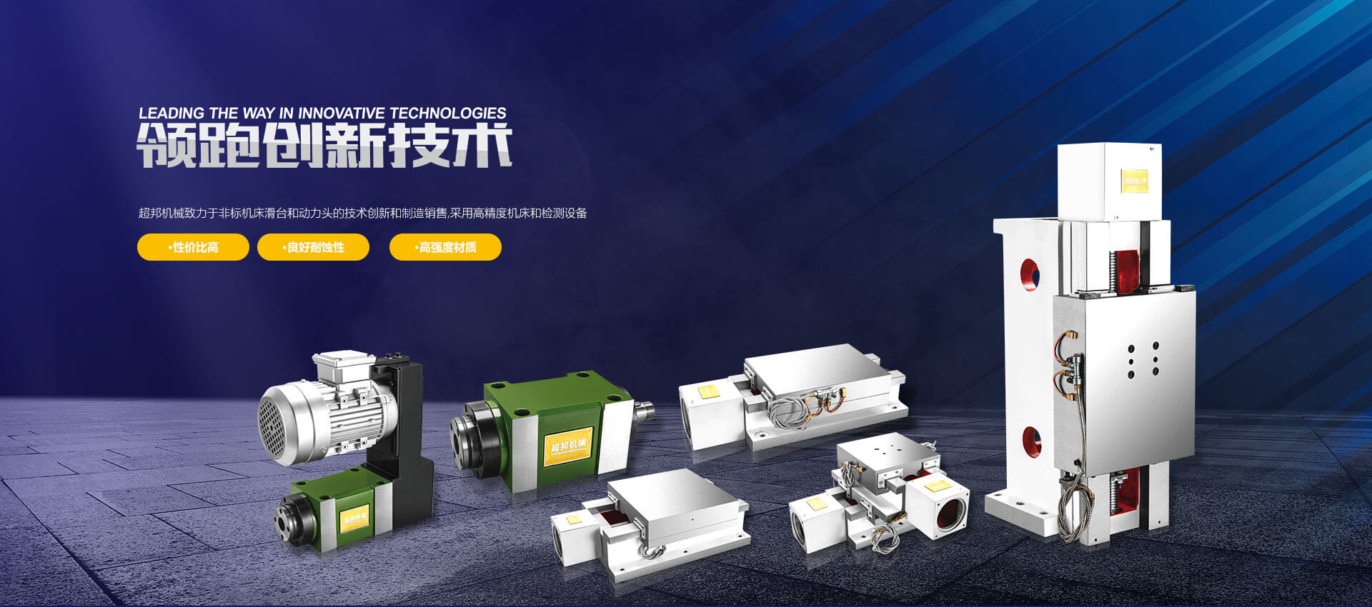 臺(tái)州市超邦機(jī)械設(shè)備制造有限公司是一家專業(yè)設(shè)計(jì)制造組合機(jī)床和數(shù)控滑臺(tái)的廠家。目前的主要產(chǎn)品有數(shù)控滑臺(tái)、機(jī)械滑臺(tái)、數(shù)控銑頭等,品種多,規(guī)格全,同時(shí)還為客戶設(shè)計(jì)各種非標(biāo)的滑臺(tái)和銑頭。主打產(chǎn)品是數(shù)控滑臺(tái),導(dǎo)軌表面經(jīng)過高頻淬火,表面硬度可達(dá)到HRC52度以上。